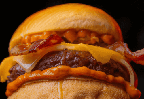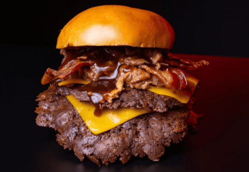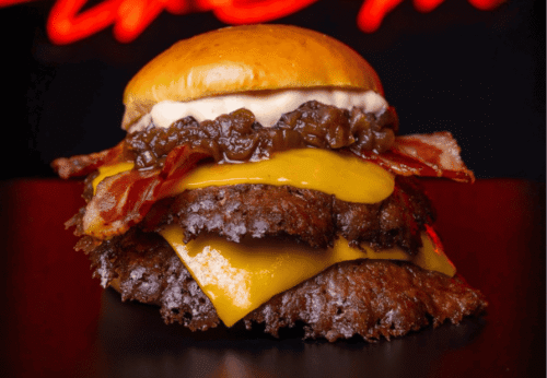Doble smash de frisona, costilla melosa a baja temperatura, cheddar que se derrite solo, cebolla crujiente, bacon bits y nuestra salsa atrevida